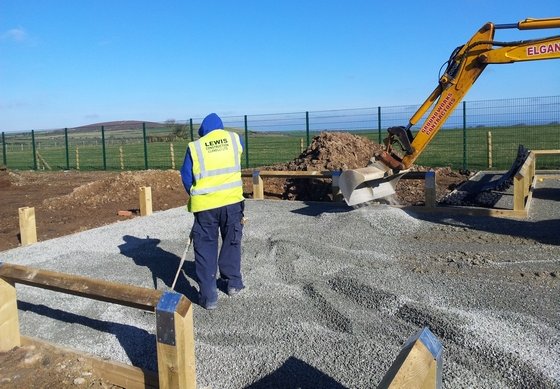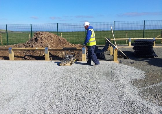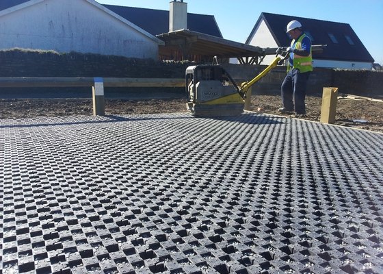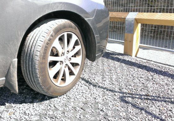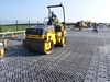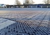 PERFO-AK Anchor tiles installed in crushed stone to provide a permeable parking area.